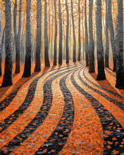 Van Gogh's "Avenue of Poplars in Autumn" Reimagined in Folk Art Style - by Van Gogh