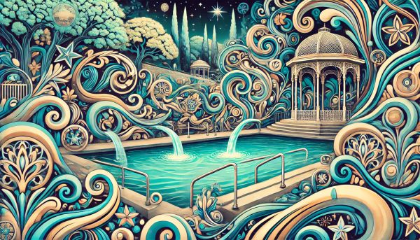 Title: Enchanting Art Nouveau Rendition of Barton Springs Under Starlit Sky