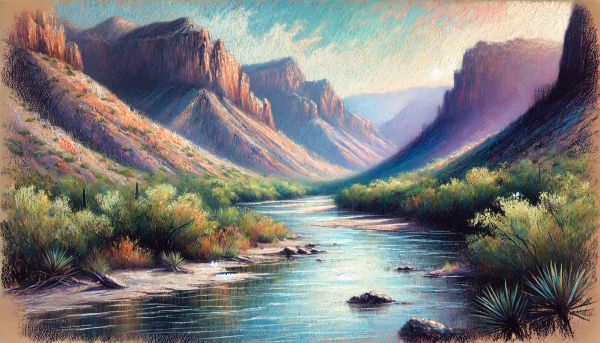 Title: Enchanting Pastel Depiction of the Rio Grande at Big Bend Photo ID: 60629 |