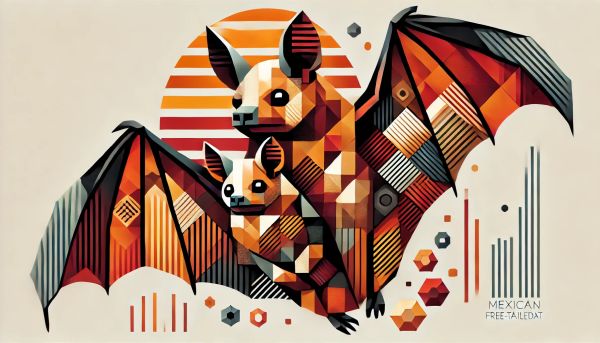 Title: Vibrant Cubist Interpretation of Mexican Free-Tailed Bats in Flight Photo ID: 60781 |