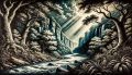 Enchanting Pathways and Ancient Trees: An Ink Wash Perspective