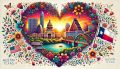 Dreamy Heart-Shaped Illustration of Austin, Texas in Vibrant Colors