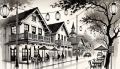 Rainey Street Captured in Japanese Ink Wash Painting, Austin, TX