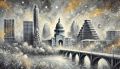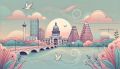 Serene Nature Meets Urban Skyline in Watercolor Harmony