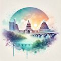 Ethereal Watercolor Fusion of Landmarks in Austin, Texas