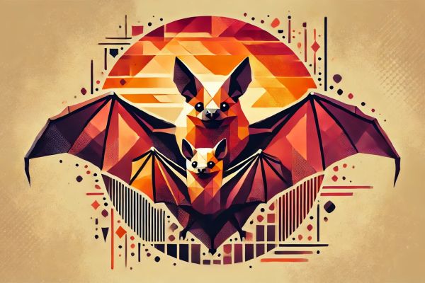 Cubist-Inspired Art of Mexican Free-Tailed Bats in Warm Hues