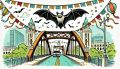 Whimsical Illustration of Bats Over Congress Avenue Bridge, Austin