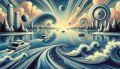 Surreal Futuristic Vision of Lake Texoma with Waves and Skyscrapers