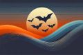 Vibrant Cubist-Inspired Illustration of Bats Soaring Above Austin