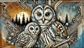 Barred Owls in Cubist Landscape: A Fusion of Nature and Technology