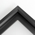 This simple, tapered edge canvas floater frame features a narrow face with a drop edge that widens internally toward the base.  This style, in a classic matte black, lends a unique hovering effect to your framed canvas.