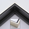 This small, L-shaped floating canvas frame in matte black features a brushed Silver face.
