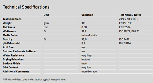 These specs are for Hahnemuehle brand German Etching paper.