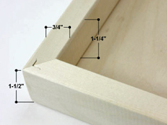 The 1/8" thick plywood is joined to the frame with a strong adhesive, eliminating the need for staples, nails, or any other attachments that would mar the smooth, flat surface of the panel. The panels are available with two different frame depths: