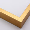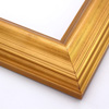 This simple wood frame with a light golden wash highlights the natural wood grain and features a stepped inner lip.