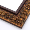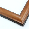 This simple wood frame with a deep mahogany wash highlights the natural wood grain and features a stepped inner lip.
