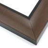This solid wood canvas floater frame features a high shine, deep walnut finish with striped wood grain detailing on the outside edge and topmost face. The inside step and base are a glossy black.