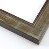 This soft frame features a reverse, stepped curve at the outer edge. The pearlized, walnut-wood wash creates a cleanly rustic effect that highlights the natural wood grain.